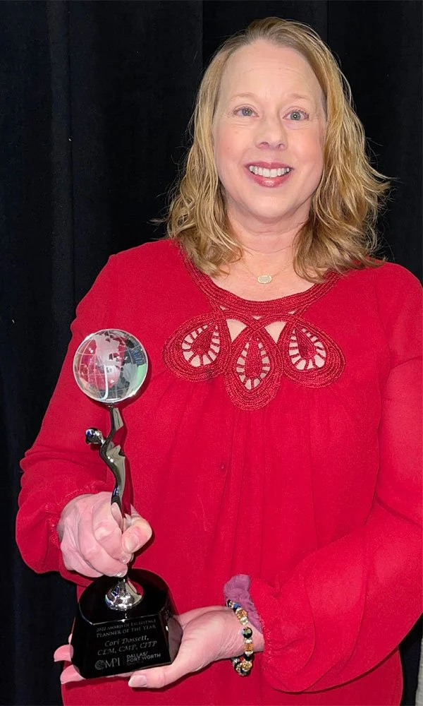 In the fall of 2011, Cori was recognized for her personal and professional service in a feature article in her college alma mater’s alumni magazine, The Texas Aggie. She continues to write and teach on experiences, trends and best practices in the meeting planning industry. Cori has been recognized with numerous industry awards and nominations, including the awarding of the MPI DFW Planner of the Year in 2022.